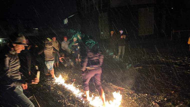 Nach vierzehn Tagen hiess es wieder mit den Tieren umziehen zur Alp Stäfel, 1927 müM. Morgens um 05.00 Uhr aufstehen und um 06:00 Uhr vorbereiten für den Alpauftrieb zum nächsten Alp-Stafel. Mit 123 Tieren den 90 minütigen steilen Aufstieg im dicken Nebel zum nächsten Weidegebiet hatte ich fast 15 kg Gepäck dabei und es fühlte sich am Anfang sehr streng an. Aber das pausenlose Rufen der Tiere und der gleichmäßige Schritt versetzten mich in eine Trance, und ich spürte die Anstrengung erst wieder, als ich das Weidegebiet erreicht hatte und begann, die Tiere zu zählen, damit wir auch alle oben waren. Nach einer kurzen Pause durfte ich mit den Bauern die Zäune erstellen und die Grenzzäune kontrollieren.