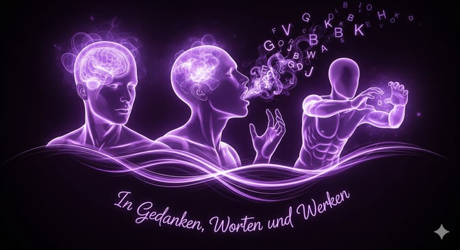 Zusammenfassend lässt sich also sagen, dass die Bibel die Bedeutung von Gedanken, Worten und Werken als eine Einheit betrachtet, die unser ganzes Gott-Sein im Leben widerspiegelt. Die Formulierung "in Gedanken, Worten und Werken" ist eine prägnante und kraftvolle Zusammenfassung dieses universellen Gesetzes! Es ist die Anleitung zum Manifestieren in seiner reinsten Form.